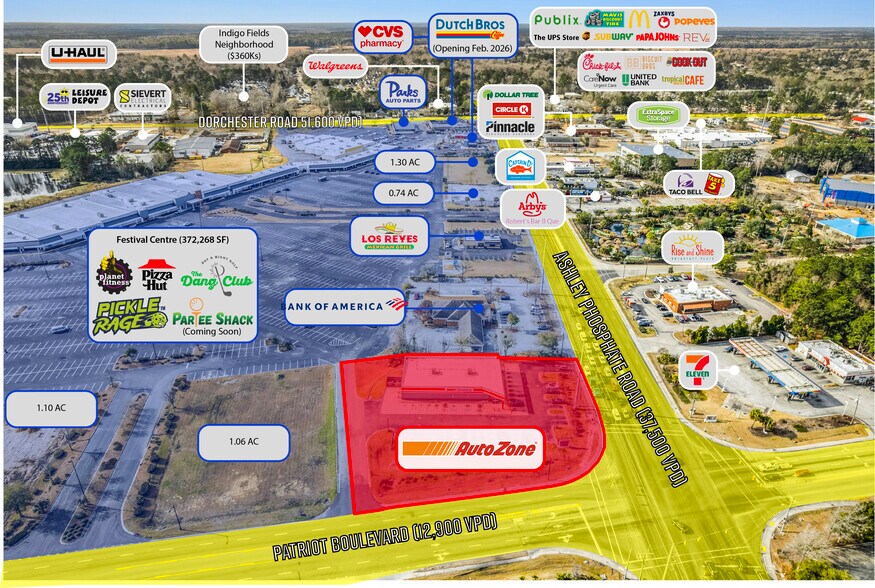 AutoZone 8385 Patriot Blvd Local commercial 684 m² À vendre Charleston, SC 29418 2 157 175 € (3 153,99 €/m²) Taux de capitalisation 4,52 %