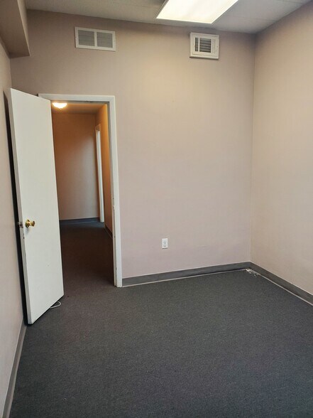 This attractive office suite offers a clean, modern layout with large windows that flood the space with natural sunlight throughout the day. Neutral gray walls and plush commercial carpeting create a professional and welcoming atmosphere suitable for a variety of business uses. The suite features an open, flexible floor plan ideal for private offices, conference space, or collaborative work areas. Drop ceilings with integrated lighting provide consistent illumination, while window blinds allow for light control and privacy as needed. Multiple entry points and adjoining rooms offer versatility for reception, meeting, or administrative areas. Well-maintained and move-in ready, this office space is perfect for businesses seeking a bright, functional, and professional environment.