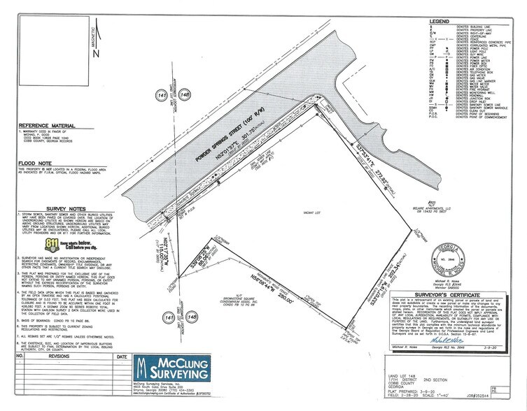 Situé à 300 pieds de façade sur la rue Powder Springs, ce terrain de 1,9 acre est prêt pour un développement de premier ordre. Terrain plat avec tous les services publics disponibles. Nord : Résidentiel ; nouveau lotissement détaché SFR pour 55 ans et plus connu sous le nom de Marietta Township Sud : Résidentiel à moyenne ou haute densité ; maisons de ville Brownstone Square et appartements The BelAire Est : Commerce de détail ; centre de strip-tease avec principalement des locataires locaux et des bâtiments commerciaux indépendants. Ouest : Résidentiel ; maisons individuelles SFR