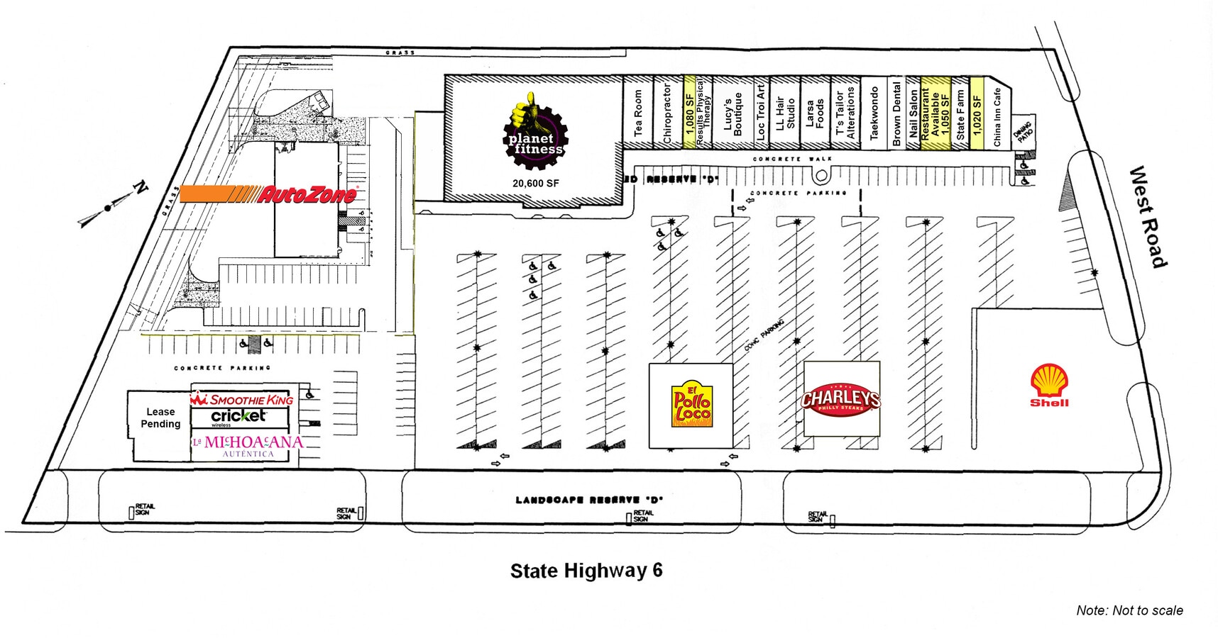 Les principaux locataires incluent Planet Fitness, AutoZone, Charley's Philly Steaks et El Pollo Loco. Angle sud-ouest de l'autoroute 6 et de la route ouest à Copperfield. Espace commercial de premier ordre à louer dans un centre de quartier animé dans le cadre du développement communautaire planifié de Copperfield.