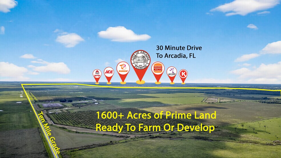 A rare opportunity awaits in Central Florida with this 1,620-acre ''MOL'' Legacy income-producing farm, offered at just under $25,000 per acre. Located only 15 to 20 minutes from shopping, dining, and major highways, this expansive property provides immediate agricultural income with exceptional long-term development potential in a rapidly growing region. With approximately 916 acres of land planted with approximately over 138,000 mature orange trees (averaging 151 trees per acre), the site generates great income from juice production. An additional 270 acres are dedicated to high-yield watermelon production (98 acres was used in spring 2025), supported by excellent soil and advanced water management infrastructure, you can produce tons of vegetables and several other agricultural activities. With the RIGHT team and management you can potentially average $7-$10 million income a year. The property has a comprehensive irrigation and drainage system with nine deep 12-inch wells, nine lift pumps, and nine retention areas featuring manufactured ponds. Fully cleared, well-maintained, and drivable, the land is ready for continued production or future commercial development. This large Central Florida land/ contiguous tract offers flexibility for expanding an existing operation, diversifying crops, or serving as a strategic land-bank investment. Convenient access to nearby regional hubs, such as Wauchula, Sebring, Arcadia, and the Greater Tampa Bay area, enhances its long-term appeal as developments grow in this region. Zolfo Springs and the surrounding Hardee County region are experiencing rapid growth, with residential and commercial development steadily encroaching on each other each year. As population and infrastructure continue to expand, properties of this caliber are becoming increasingly scarce. Investors can expect significant appreciation potential, with projections suggesting this land could double or even triple in value within the next 10 to 15 years. Proven agricultural income, premium-quality land, and exceptional development potential make this 1,620-acre Zolfo Springs farm a once-in-a-lifetime opportunity. Expand agricultural operations, invest in high-value farmland, or secure a long-term asset in one of Florida’s fastest-growing regions. Call 801-918-7745 for more information.