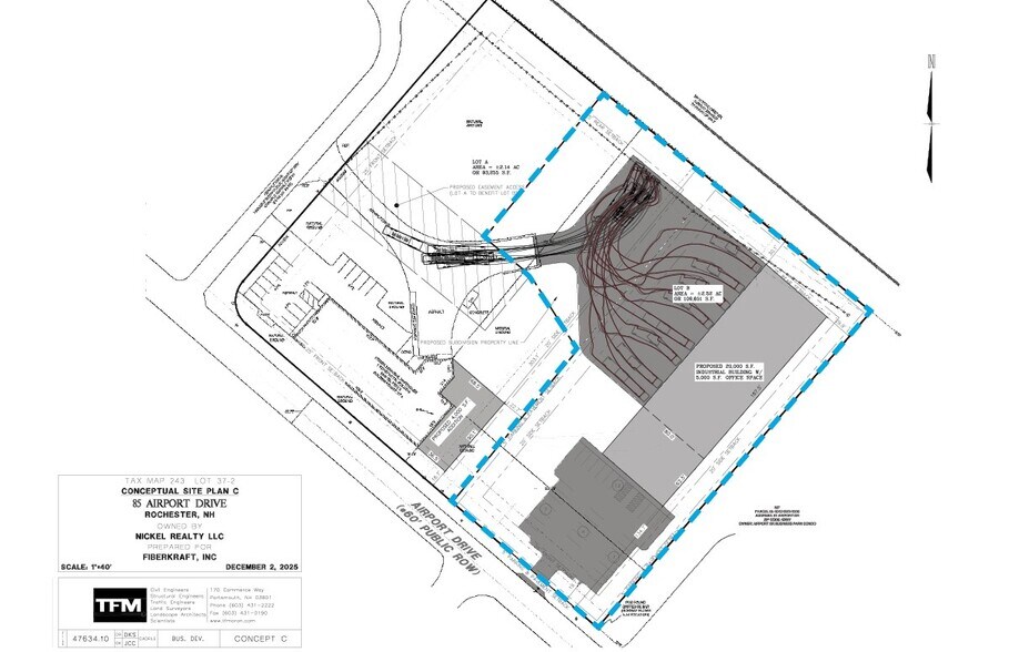 2.52± acre land parcel available for sale on Airport Drive within the Granite State Business Park. The lot has obtained preliminary approval and is subject to final approvals. Municipal water and sewer, natural gas, and electric available at the site. Conceptual plans available for 15,000± and 20,000± SF warehouse facilities. Granite State Business Park is home to high-tech, advanced manufacturing, and medical device users serving the aerospace, healthcare, automotive, and defense industries. Strategically located off Rochester Hill Road, directly across from Skyhaven Airport and 30± minutes north of Portsmouth, NH.