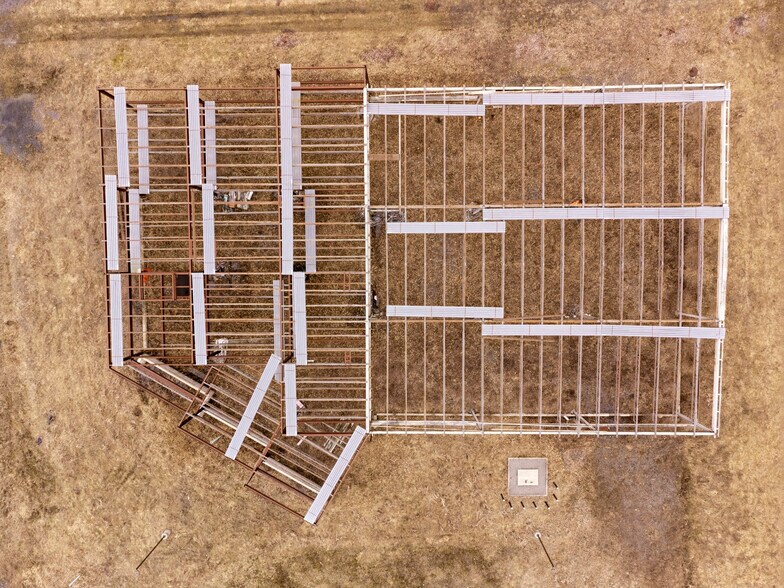 - Foundation poured and steel frame erected