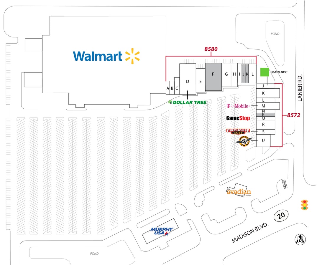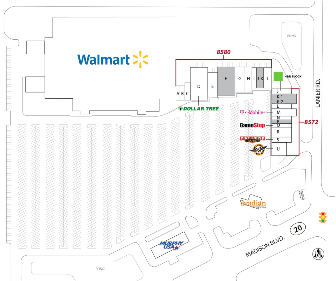 | Magasins | 19 | Rues transversales | Madison Blvd & Lanier Rd |