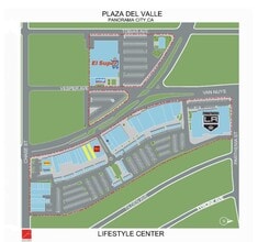 Plaza Del Valle est un centre commercial en plein air familial situé au cœur de Panorama City, à l'intersection nord-est du boulevard Van Nuys et de Chase Street. La place communautaire est un lieu de rassemblement pour les personnes qui vivent et travaillent dans les environs. Ici, vous avez la possibilité d'acheter des produits et des services les uns aux autres et il y a plus de 100 petits magasins de détail et restaurants. La densité est de plus de 75 000 personnes dans un rayon d'un mile carré.