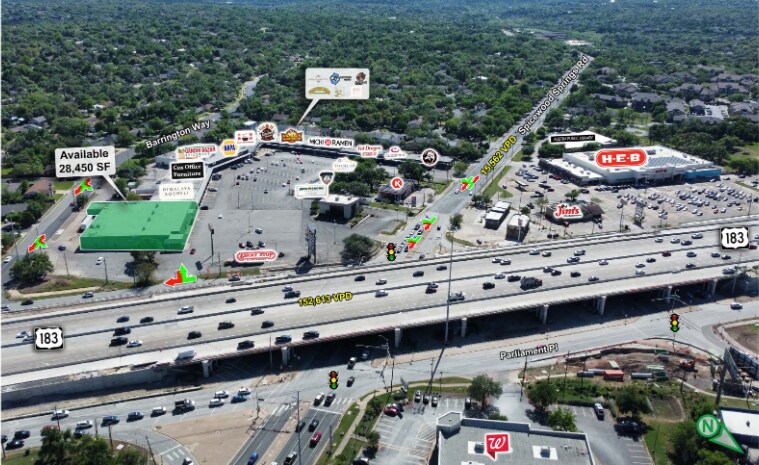 - Retail center has multiple access points and great visibility to US-183 with over 100,000 vehicles passing daily for prime exposure.
