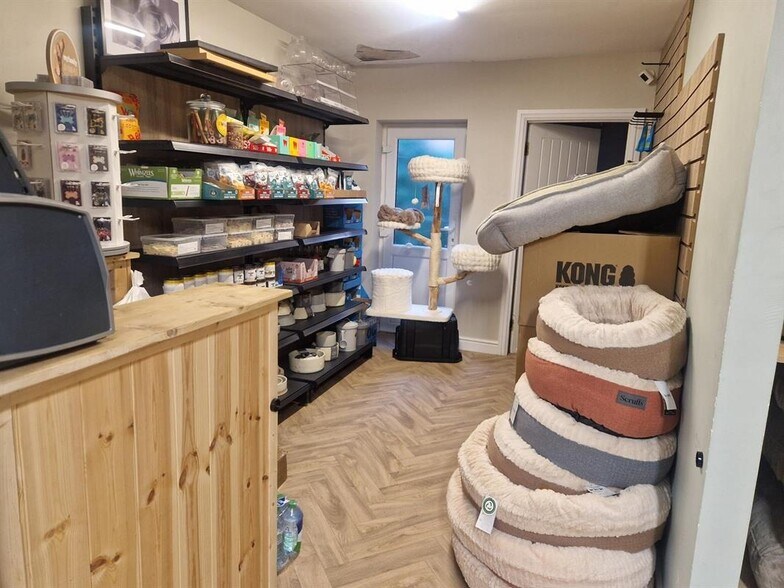 The retail unit offers a versatile ground floor layout, suitable for a variety of uses (subject to planning), including retail, coffee shop, takeaway, or personal services. The shop benefits from a prominent frontage, large display windows, fronting the main road. Upstairs the property provides two storage rooms and WC/shower facilities.
