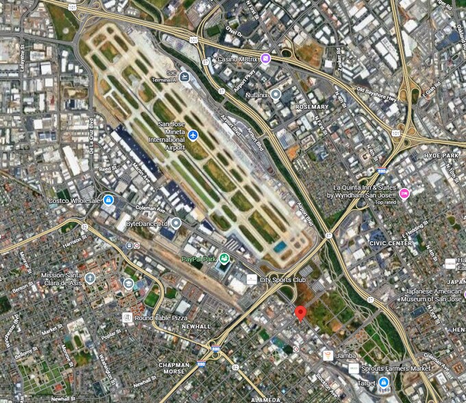 Two-story office and retail building with excellent visibility along Coleman Avenue in San Jose. Conveniently located minutes from San Jose International Airport and major highways including I-880, Hwy 101, and Hwy 87. Features ample on-site parking, shared restrooms on each floor, and janitorial service. Ideal for professional office or service retail uses such as insurance, tax, mortgage, tutoring, or salon.