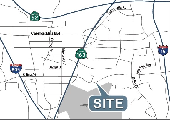 Conveniently located near major freeways including I-15, I-805, and SR-52, the site ensures seamless connectivity to the greater San Diego region. Surrounding amenities include retail, dining, and hospitality options, creating a vibrant business ecosystem. Nearby landmarks such as Montgomery Field Airport and USMC Air Station Miramar further enhance logistical advantages.