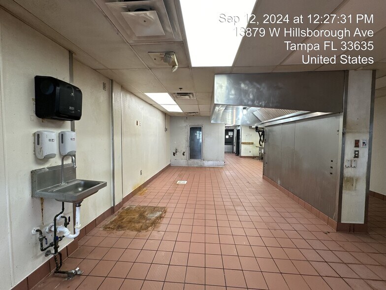 SPACE IS A FORMER PIZZA HUT WITH WALKIN COOLER FREEZER, HOOD, 3 COMPARTMENT SINKS ETC.