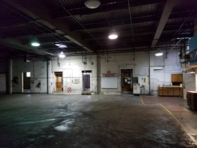 Skylights, floor drains, dock and drive-in, gas blowers for heat, heavy 3-phase power, small office, formerly used for storage and heavy equipment repair and maintenance.