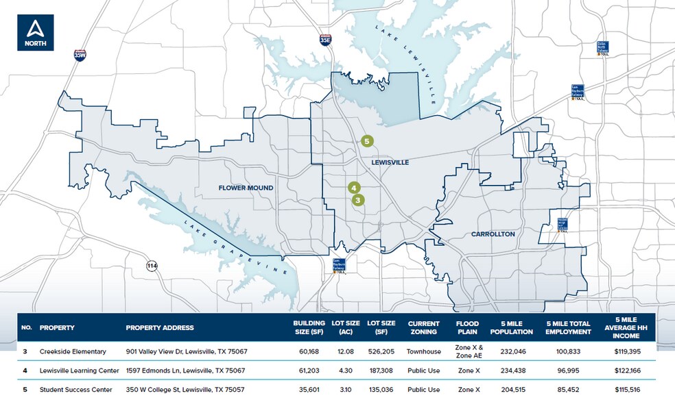 This property is located at the intersection of Edmonds Lane and Valley View Drive. A portion of this property is within the ?oodplain and ?oodway, yielding a total developable acreage of approximately 8 acres. Homes in the surrounding area were built in the 90’s with pricing ranging from the upper $300,000’s to the mid $500,000’s. Rare Development Opportunity: The Property is one of the few large undeveloped tracts of land remaining in the heart of Lewisville. Nearly all of the area surrounding the property is builtout with almost no land available for development. This phenomenon has contributed to the rise in existing home prices in the immediate area leaving a shortage of inventory for new homes. Centralized Proximity: The Property’s centralized location makes it highly desirable for commuters looking for convenient access to nearby highways. The intersection of State Highway 121 and Interstate 35E is less than 5 miles east of the Property. Additionally, downtown Lewisville and the Denton County A-Train commuter rail is only ±3 miles away. This allows commuters the ability to avoid traffic and ride the A-Train, which connects to the DART Light Rail system to the south, providing easy access to Downtown Dallas, Las Colinas and DFW International Airport. Exceptional Growth: The property is in a high growth area projected to continue seeing strong population, employment and income growth. The proximity to major employment and commuting centers make it ideal for residents commuting to Legacy, Frisco, Las Colinas, Dallas or Fort Worth. Impressive Demographics: There are over 108,600 residents with median household incomes of over $78,000 within 3 miles of the Property. The area is mostly built out with high barriers to entry. New residential development is projected to perform extremely well based on the limited supply and unmet demand.