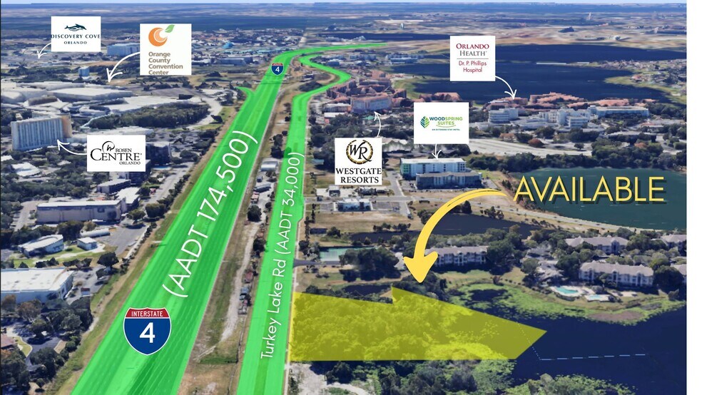 Strategically located just minutes from Dr. Phillips, International Drive, and major attractions, the property benefits from close proximity to Restaurant Row, upscale residential neighborhoods, hotels, and regional employers. Easy access to I-4, the Florida Turnpike, and SR 528 (Beachline Expressway) ensures efficient connectivity throughout the Orlando MSA and to Orlando International Airport.