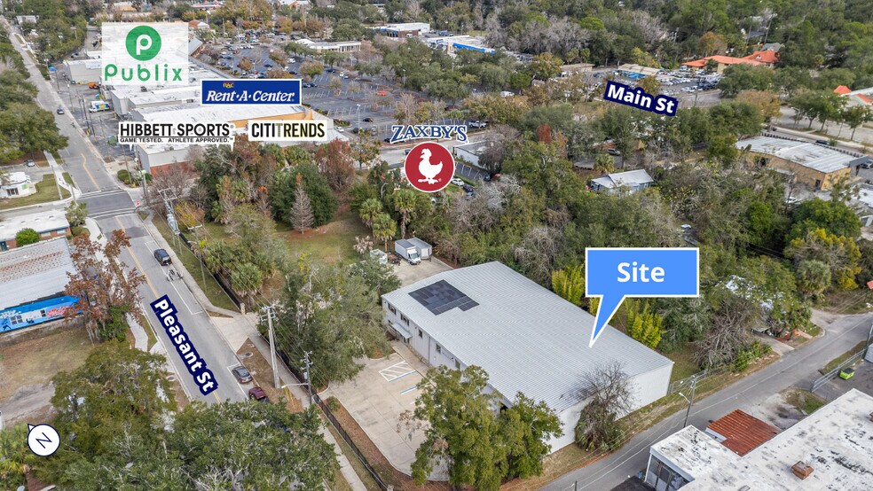 • 10,900± SF total (9,100± SF warehouse + 1,800± SF office) • 1.38±-acre lot in Downtown Gainesville • Warehouse clear height: 21’2” center; 14’8” eaves • Two roll-up doors: 14’x20’ & 14’x16’ with drive-thru capability • 15 on-site parking spaces + street parking • Built in 2015; fully insulated warehouse • Security: 9-camera live monitored security system for the office and warehouse, fully fenced with remote overhead and gate access • Energy features: Solar panels, battery backup, LED lighting • Amenities: Full kitchen, two 12-ft “Big Ass” fans, automatic site lighting, 4 full bathrooms - 3 lower and 1 private upstairs • Office upgrades: Remote HVAC control, executive office with shower • Location: Near UF, downtown, retail, restaurants, airport, I-75 • Zoning: U8 (Urban 8)