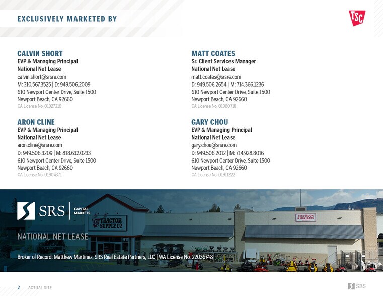 SRS National Net Lease is pleased to offer the opportunity to acquire the fee simple interest (land & building ownership) in a NN leased Tractor Supply Co. (Nasdaq: TSCO) investment property located in Enumclaw, Washington. The corporate entity recently signed a 15-year lease with options to extend at close of escrow. The lease features 5% scheduled rental increases throughout the initial term and at the beginning of each option period, steadily growing NOI and hedging against inflation. The lease is NN with limited landlord responsibilities making it an ideal, low-management investment opportunity for a passive investor. Tractor Supply Company has more than 2,400 locations across the U.S. and maintains strong financial performance with a national average unit volume of approximately $6.5MM.