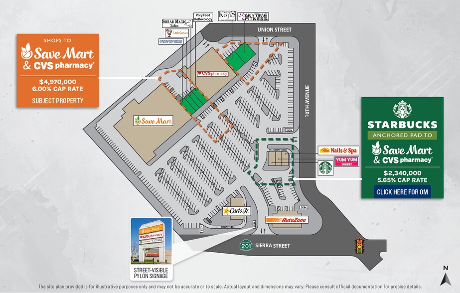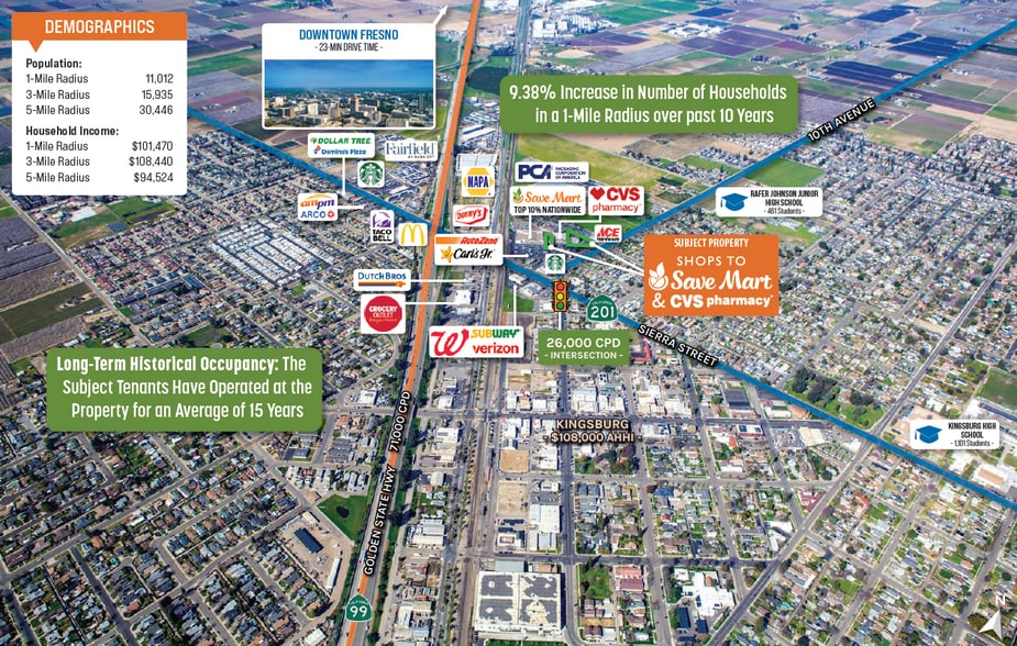 Shops to Dominant Save Mart (Top 10% in Chain Nationwide) and CVS Pharmacy | Long-Term Occupancy with Below-Market Rents | Affluent Central Valley Demographics ($108,000 in a 3-Mile Radius)