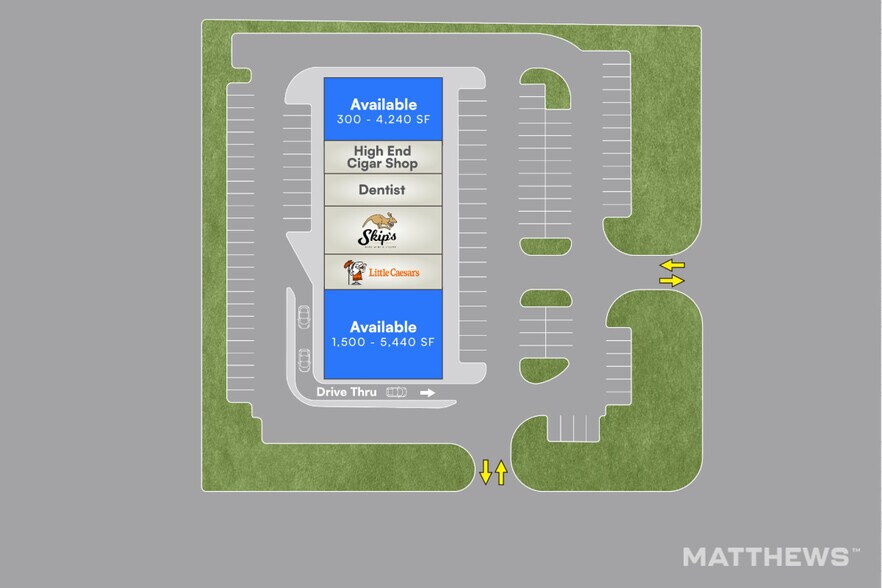 - Endcap with Drive-Thru: Prime endcap position featuring drive-thru infrastructure, ideal for high-demand retail or QSR users.