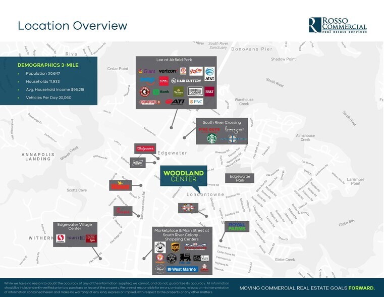 Centre de strip-tease de quartier bien aménagé et très recherché à Edgewater, MD, disponible à la location. Rejoignez Senors Chile, Londontowne Tropicals, Brass on Ivory Music Store et bien d'autres encore... Espace de vente en ligne récemment disponible le long de Mayo Rd. Ce magasin de 1 130 pieds carrés offre une visibilité et une signalisation excellentes avec 20 000 voitures qui passent chaque jour. Contactez le courtier pour plus de détails.