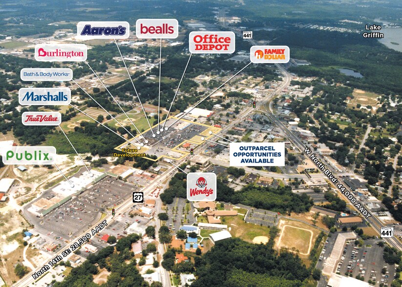 Le Gateway Plaza est situé sur la 14e rue N (US 27), l'artère principale du quartier, juste au sud de l'intersection du North Boulevard W (US 441). Ancré par Big Lots, Bealls Outlet et Office Depot, l'établissement propose un guichet unique pratique pour les quelque 111 500 personnes dans un rayon de 11 miles. La zone commerciale comprend The Villages, la vaste communauté active de voiturettes de golf pour adultes qui connaît le pourcentage de croissance le plus élevé du pays.