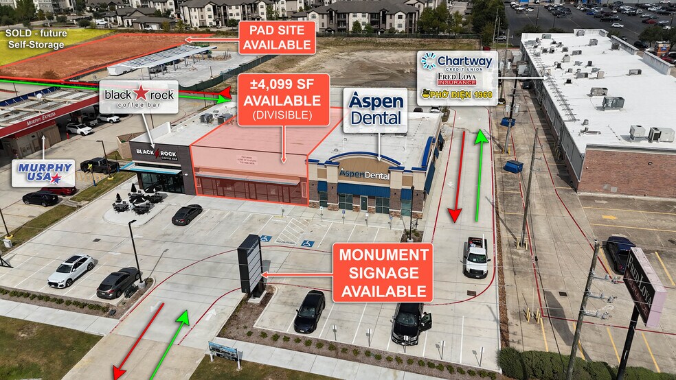 Sites Wal-Mart à plate-forme ancrée et espace de vente au détail pour les nouvelles constructions disponibles. Rejoignez Black Rock Coffee & Aspen Dental dans cette importante zone commerciale régionale. Entouré d'opérateurs nationaux et régionaux, d'employeurs et de développements résidentiels établis. À moins d'un kilomètre de l'autoroute US 59/Eastex, une artère majeure de la MSA de Houston, et de l'aéroport intercontinental George Bush.