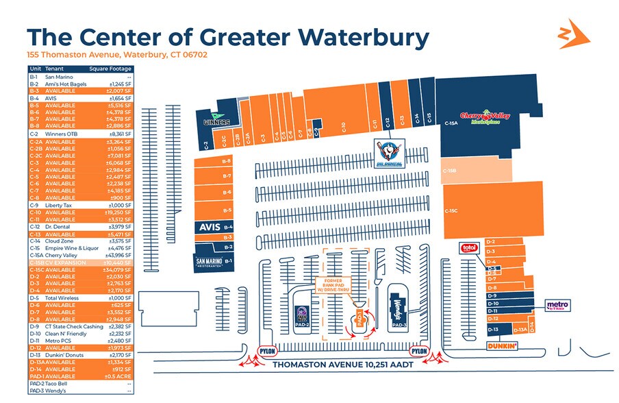 The Center of Greater Waterbury 95-155 Thomaston Ave Espace disponible | 84–12 851 m² | Waterbury, CT 06702