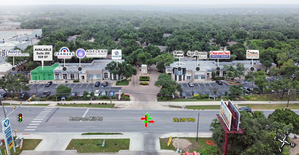 - Excellent signage and facade visibility for oncoming traffic on Anderson Mill Rd