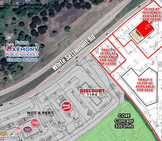 - Situé à l'angle dur d'Academy Blvd et de White Settlement Rd, à l'entrée du futur développement de la CORE Academy avec 335 unités