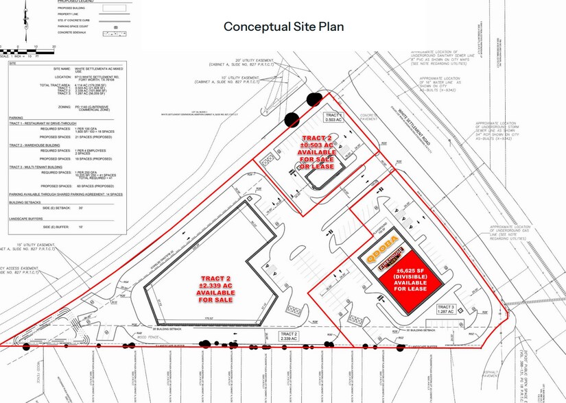 Up to 6,625 SF Retail Space Available for Lease Additionally, there are two other tracts available for Sale and or Lease, ranging from 0.503 AC to 2.339 A