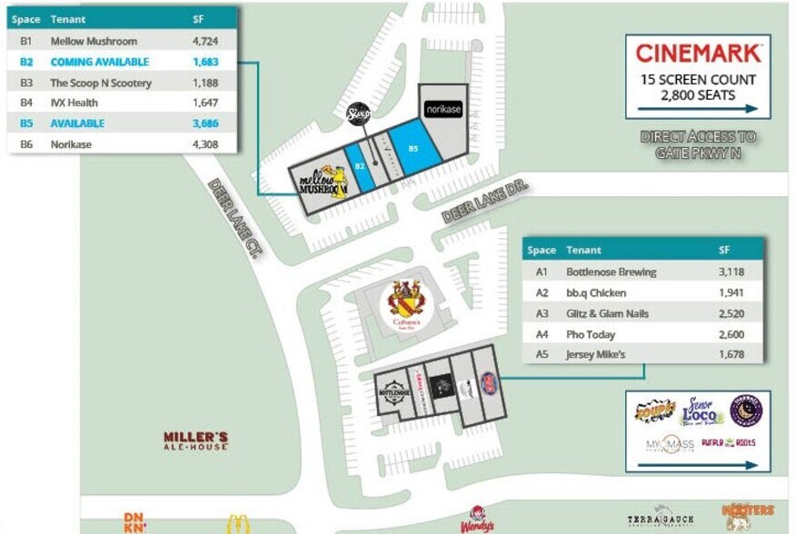 • 1 188 pieds carrés disponibles • Centre commercial de ± 29 411 pieds carrés • Situé à proximité de plus de 3 millions de pieds carrés de parcs de bureaux, dont Fidelity Investments, Florida Blue et Merrill Lynch • À côté du cinéma Cinemark Tinseltown • Le site se trouve à moins de 3 km du centre-ville de Saint-Jean • Solide location et principaux détaillants et restaurants de la région, notamment Mellow Mushroom, Cinemark Theater, McDonalds, Miller's Ale House et Chick-Fil-A