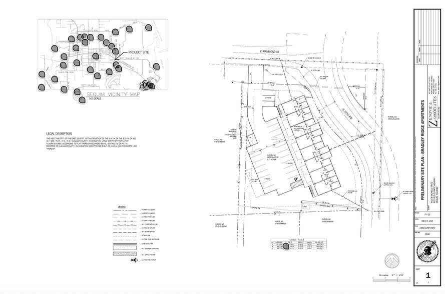 Prime development opportunity in Sequim! The Bradley Ridge Apartments project at 991 E Hammond St has Design Review approval, with engineering and building plans completed by Zenovic & Associates. Now awaiting final Building Department review before construction can begin. All pre-construction work is done—site, grading, and utility plans are included. Convenient east-side location near schools, shopping, and Olympic Discovery Trail. A nearly shovel-ready project with tremendous potential.