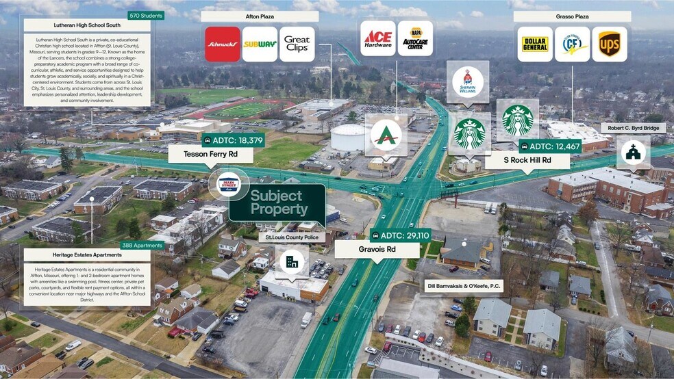 Surmount is pleased to present the exclusive listing for a located at 9990 Gravois Road, St. Louis, MO 63123. The site consists of roughly 2,835 rentable square feet of building space on an estimated 0.26 -acre parcel of land. This Main Street Auto is subject to a 20-year Triple Net (NNN) lease, which commenced 2/2 0/2025. The current annual rent is $154,897 and has scheduled increases of 2.00% Annually starting 3/1/2031.