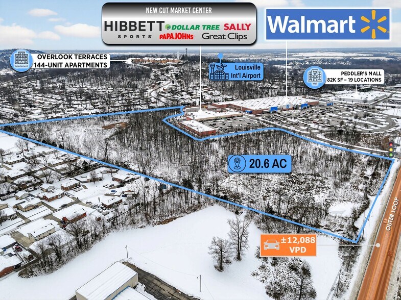 - ±12,813 VPD Traffic Frontage on Outer Loop, just east of New Cut Road (±18,803 VPD) | ±10-minutes from Louisville International Airport