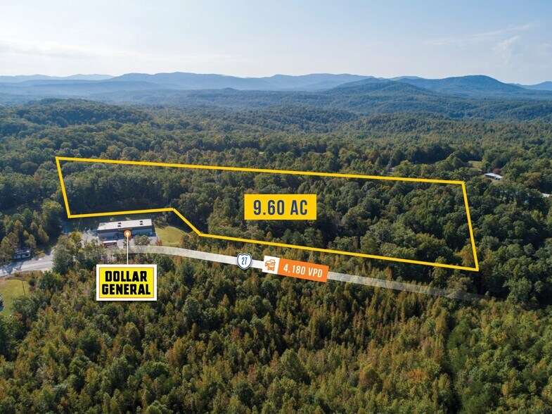 Excellente visibilité, à côté de Dollar General à Robbins, dans le Tennessee. La propriété dispose de 9,6 acres disponibles à la vente.