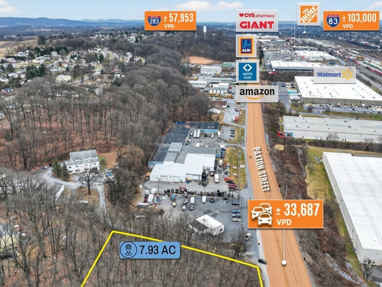 - Highway Visibility on Paxton Street (US-322) with ±33,687 Vehicles per Day and 2-Mi from I-83/I-283 Interchange with over 57K VPD