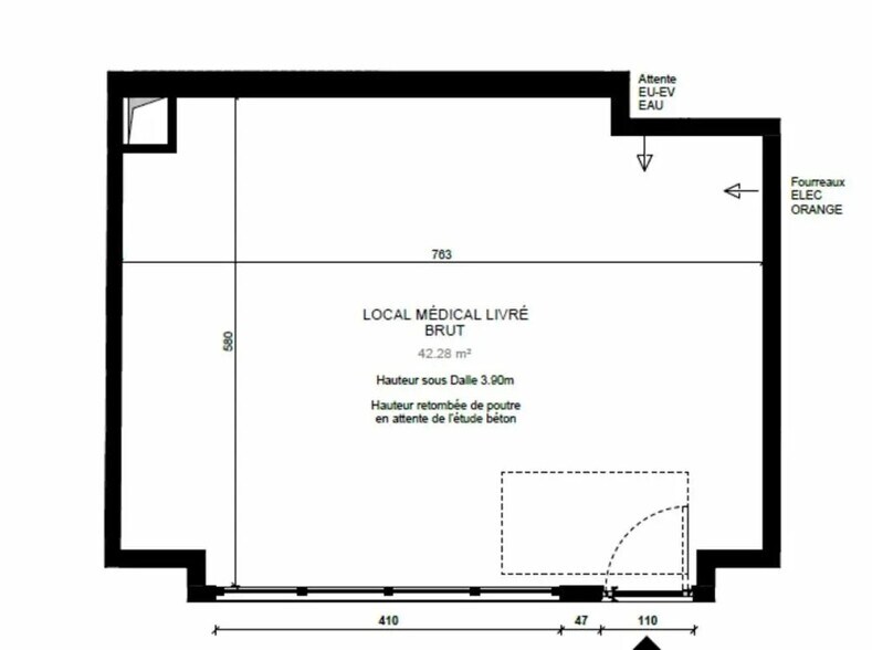 Vente murs libres d'un local d'activité professionnelle dans le médical ou para-médical d'une surface de 42 m² situé sur la commune d'Alfortville, livré brut de béton et fluides en attente, en pied d'immeuble dans une copropriété de 20 logements. Hauteur sous plafond de 3,90m - Attente VMC d'un diamètre de 400 mm -Ventilation primaire d'un diamètre de 125 mm - Fourreau de climatisation d'un diamètre de 125 mm, compteur Orange. Activité exclusivement médicale ou para-médicale Livraison 1T 2028 Réf AEL 840 827 - LOCAL PROFESSIONNEL A VENDRE 94140 ALFORTVILLE SURFACE TOTALE : 42 m² pour une activité médicale uniquement