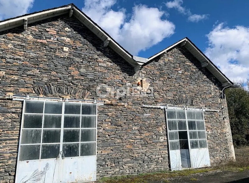 ensemble immobilier composé de deux bâtiments, un en pierre couvert en ardoises, un béton couvert en tôles fibrociments avec espaces bureaux et ateliers. Sur une parcelle de 5800 m² environ.
