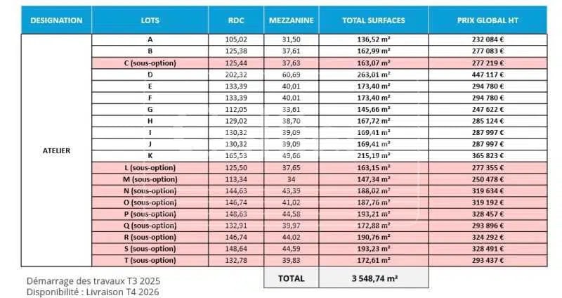 Le lot bénéficie d’un accès fonctionnel permettant de faciliter les opérations logistiques, notamment grâce à une porte sectionnelle adaptée aux livraisons régulières et au passage de matériel. La structure est conçue pour répondre aux besoins des activités nécessitant une dalle renforcée, capable de supporter des charges importantes, offrant ainsi un environnement opérationnel fiable pour les utilisateurs. Le volume intérieur est livré brut avec l’ensemble des fluides en attente, permettant une personnalisation complète de l’espace selon les besoins. L’équipement électrique est déjà dimensionné pour accueillir des machines spécifiques grâce à la présence du triphasé. Une mezzanine peut être mise en place, soutenue par une résistance prévue pour des usages professionnels. Les occupants bénéficient également de stationnements privatifs situés au plus près du lot, permettant un accueil simple des équipes et des visiteurs et facilitant le fonctionnement quotidien de l’activité.