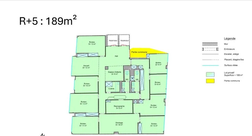 | Surface du lot | 189 m² | Usage du lot en coprop. | Bureau |