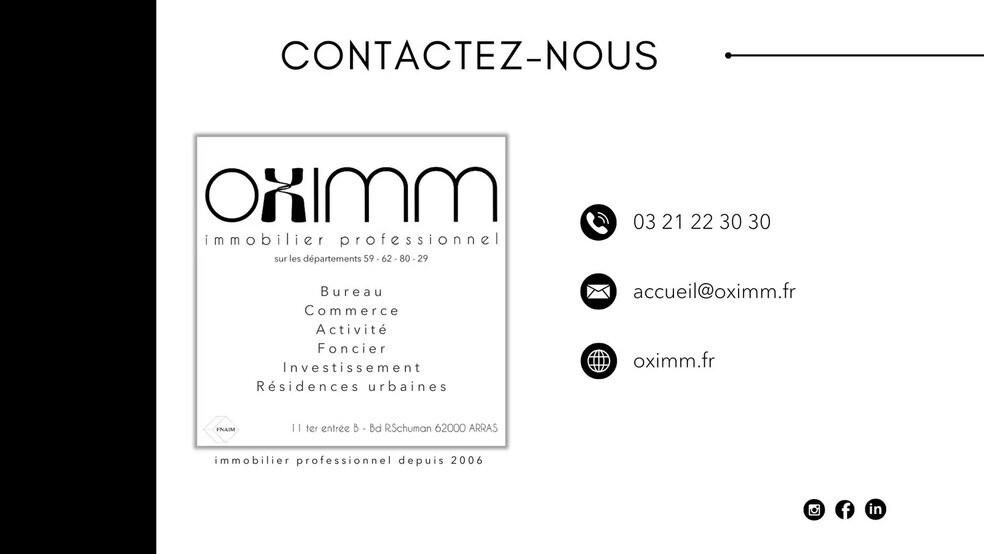 IMPLANTEZ VOUS SUR UN AXE MAJEUR D'ARRAS !?? Ces 2 sites sont situés à seulement 600-700 mètres de l’entrée Nord d’Arras et à proximité immédiate des échangeurs vers Lens, Liévin, Douai, Lille et Paris. Pour les entreprises cherchant à maximiser leur visibilité et leur accessibilité. Ne manquez pas cette occasion d’installer votre activité dans un environnement attractif ! Pour des dossiers complets ou pour organiser une visite, contactez notre équipe professionnelle, dynamique et à l'écoute. Nous sommes là pour vous accompagner dans votre projet ! Contactez l’équipe Oximm dès maintenant !??Consultez également notre site internet : www.oximm.fr