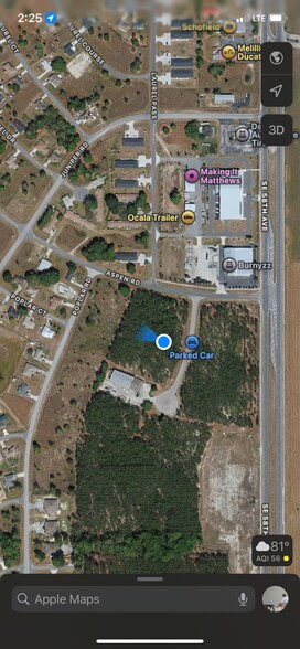 The property at 7282 Aspen Ave in Ocala, Florida, consists of 1.06 acres within the Baseline Business Center. It is zoned B-5 Heavy Business and is located one block off Baseline Road. Utilities include city water and sanitary sewer, and offsite water retention is available. The site allows up to 80% impervious coverage.