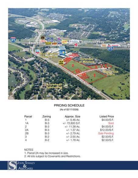 +/- 26 acres de propriété zonée B-2 et B-3 (autoroute commerciale). Le propriétaire va subdiviser. Excellent emplacement pour un restaurant, un commerce, une vente au détail, un bureau, une église ou une école. Les prix varient de 2,50$ à 10$ S.F. Situé sur l'autoroute Atlanta/U.S. 80 avec +/- 1 345 pieds de façade.