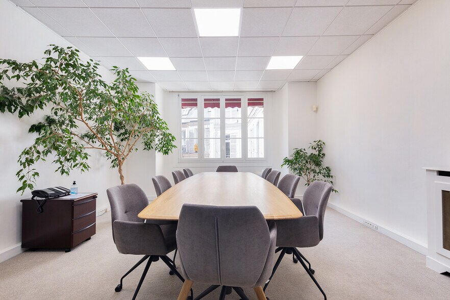 Cet espace situé au sein d’un immeuble haussmannien de standing se distingue par une rénovation récente offrant un cadre de travail moderne tout en conservant le charme de l’ancien. L’aménagement actuel comprend plusieurs bureaux fermés et une salle de réunion permettant une installation immédiate. La hauteur sous plafond généreuse, les huisseries neuves, les sanitaires refaits ainsi que la présence d’une kitchenette créent un environnement fonctionnel et confortable. L’espace bénéficie d’un système de climatisation, d’une porte blindée et d’un dispositif d’alarme assurant un niveau de sécurité renforcé. Grâce à sa distribution efficace et à ses prestations soignées, il permet d’accueillir différents types d’activités tertiaires recherchant un cadre qualitatif et opérationnel dès l’entrée dans les lieux.