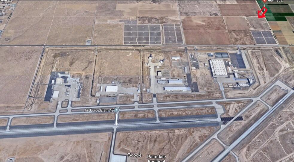 La propriété industrielle d'East Palmdale est située entre deux sites industriels majeurs : le parc d'affaires de Lancaster au nord-ouest, juste de l'autre côté de l'avenue L et l'usine 42, la « capitale mondiale de l'aérospatiale » au sud-est. Le parc d'affaires de Lancaster, qui s'étend sur 240 acres, compte des locataires de renom tels que Fed-X, Deluxe, Lance Campers et plusieurs bureaux du gouvernement du comté. L'usine 42 abrite les 3 grands acteurs de l'aérospatiale : Boeing, Northrup Grumman et Lockheed Martin. Cette propriété est située à environ 800 mètres de chacune. L'aéroport de Palmdale, qui est actuellement une nouvelle compagnie aérienne, se trouve également à la 25e rue E et avenue O-8. Des lignes à haute tension bordent cette propriété le long de l'avenue L-8.