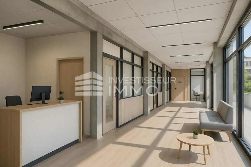 Ce plateau situé à l’étage profite d’une excellente luminosité naturelle grâce à de larges ouvertures donnant sur l’extérieur. Les espaces sont livrés bruts afin de permettre une conception personnalisée des différents postes de travail, salles de réunion ou espaces d’accueil, selon les besoins spécifiques d’une activité tertiaire ou médicale.