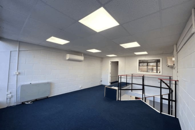 The property is a mid terrace office unit with office/meeting room, kitchen and WC facilities on the ground floor. The first floor comprises an open plan office space with a meeting room. There is a roller shutter door to the rear. Externally there is parking for 1 vehicle outside the unit plus access to the communal parking area. The unit is available to let on terms to be agreed - Guide rent of £8,000 per annum plus VAT.