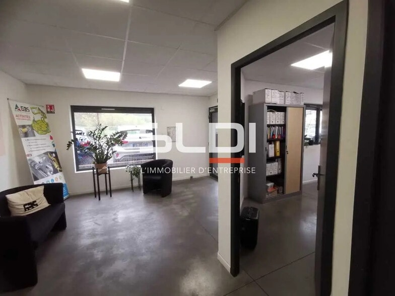 La SLDI vous propose un ensemble d'activité et de bureaux d'une superficie de 1720 m² plus un préau de 150 m², sur un terrain de 5955 m². La partie activité environ 1500 m² d'une hauteur sous toiture suivant les zones de 5.30 m à 9.50 m, deux portes sectionnelle de 4.5 m X 4 m. Soubassement en parpaing, structure et charpente métallique avec isolation. Chauffage gaz par aérothermes. Pont 3.5 T. Les bureaux agrandies et réhabilités en 2019 d'une superficie de 220 m² sont composés d'un hall d'accueil, de 5 bureaux, une salle de réunion, vestiaire toilette. Pompe à chaleur réversible pour l'ensemble des bureaux. Préau d'environ 150 m², équipé d'une cabine de peinture. - Refaits à neuf en 2019 - Climatisation réversible - Grande salle de réunion - Eclairage LED, - Espace cuisine équipée, - Vestiaires, sanitaires, locaux sociaux. Surface RDC : 1870 m² Surface terrain : 5955 Haut. libre min. ss poutre : 6,5 m Résistance sol : 3,2 T/m²