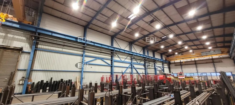 Secteur Lyon EST, axe Lyon Genève, un bâtiment d'activité comportant des ponts roulants d'une capacité de 20 tonnes. Commercialisation EOL Hauteur : 7 à 10,8 m Accès de plain-pied : 2 R.I.A. Voierie lourde Informatique : Câblage informatique Aménagement : Salle de réunion, Kitchenette, Douche, Entièrement cloisonné Technique : Faux plafonds Éclairage LED