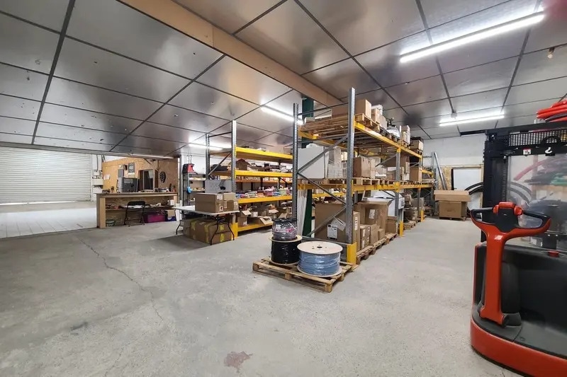 La partie bureaux de 360 m² a été réalisée récemment et propose de belles prestations et un cadre de travail agréable. Elle est composée d'un accueil, d'un open space, de 5 grands bureaux, d'une salle de réunion, d'une grande cuisine aménagée et de locaux sociaux (vestiaires, sanitaires, douche).