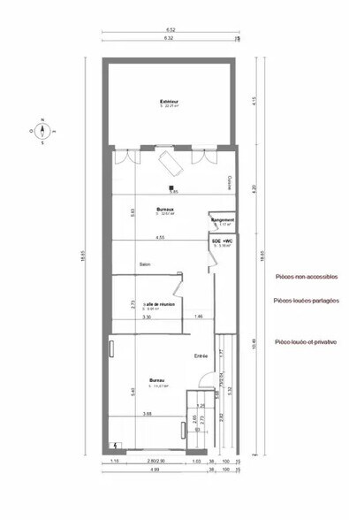 | Espace total disponible | 68 m² | Surface commerciale utile | 68 m² |