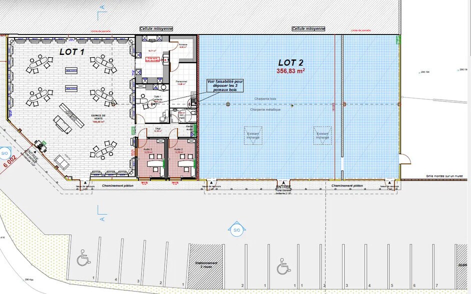 | Espace total disponible | 356 m² | Type de bien | Local commercial |